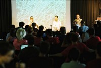 Kristian Lukic, Dunja Kukovec + Audience at Open Cultures Conference 2003 at Karlsplatz, Vienna